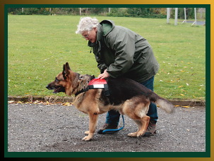 Ostara folgte mit dem Absuchen der Revierzelte und der Verfolgung sowie Unterbindung der Flucht des Helfers aus einem Versteck. Bei der Kampfeinstellung zeigte sie gehorsam das Aus mit lautstarkem Bewachen des Helfers und anschließendem Abtransport als Seitentransport. |